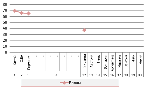 Позиції країн - учасниць Міжнародного рейтингу привабливості країн для розвитку відновлюваної енергетики