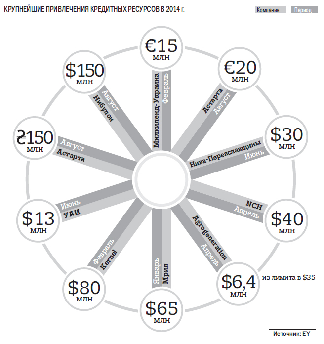 Несмотря на положительные сдвиги по некоторым компаниям, в целом доступ агрохолдингов к кредитным ресурсам весьма усложнен, констатирует начальник отдела инвестиционного анализа аналитического департамента Pro-Consulting Александр Ткачев. Иван Дзвинка называет 2014‑й «своеобразным стресс-тестом на финансовую устойчивость, гибкость бизнеса и честность» для украинских компаний.