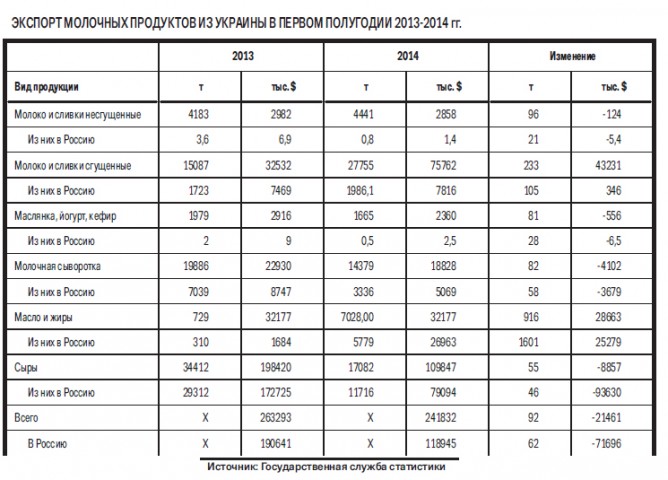 После тотального запрета России на ввоз украинской продукции, дабы минимизировать убытки, отечественные аграрии сразу принялись разрабатывать альтернативные рынки. И пока принимались законы, позволяющие экспортировать животноводческую продукцию в Европу, украинские молочники не только переформатировали географию экспорта, но и изменили ассортимент выпускаемой продукции. «После запрета украинских сыров, поставки которых в Россию составляли более 60 %, мы сменили ассортимент, сократив производство сыров в пользу сухого молока и масла», — рассказывает главный исполнительный директор «Милкиленда» Анатолий Юркевич.