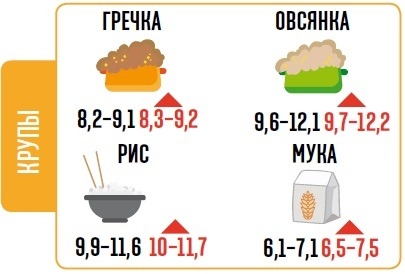 За минувший месяц, как и прогнозировали эксперты, мука подорожала с 6,1 до 7,5 грн/кг. Как пояснил нам аналитик рынка зерновых Ярослав Левицкий: «Мука дорожает и будет дорожать, что связано с ростом цен на пшеницу в Украине. Причины: затраты на хранение зерна, не полностью выполненные планы по посадке озимых и спекулятивная составляющая на рынке. В то же время продолжают оставаться стабильными цены на мировом рынке зерна, что, возможно, будет сдерживающим фактором для Украины». Нестабильная ситуация с пшеницей отразилась и на других зерновых. За минувший месяц подорожала гречиха на 50 грн/т, что скажется на ее цене в рознице. Будут незначительно расти и овес с рисом — на 0,7–1 грн/кг до конца января.