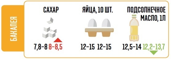 Из бакалеи в декабре подорожал только сахар — с 7,5 до 8 грн/кг. Руководитель аналитического отдела Аграрной биржи Анатолий Стоянов считает: «Цены на сахар, по сравнению с прошлым месяцем, в опте увеличились на 10%». Подорожание, как уже писали «Вести», объясняется уменьшением посевных площадей сахарной свеклы в Украине и, как следствие, производства сахара. Эксперт считает, что в январе сахар еще будет дорожать — до 8,5 грн/кг.
