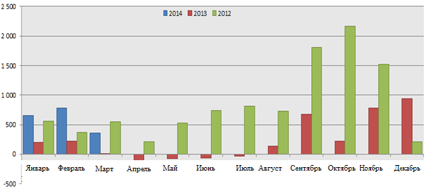 Для формування остаточних висновків необхідно розглянути історію торгів на міжбанківському ринку з початку 2014 року.