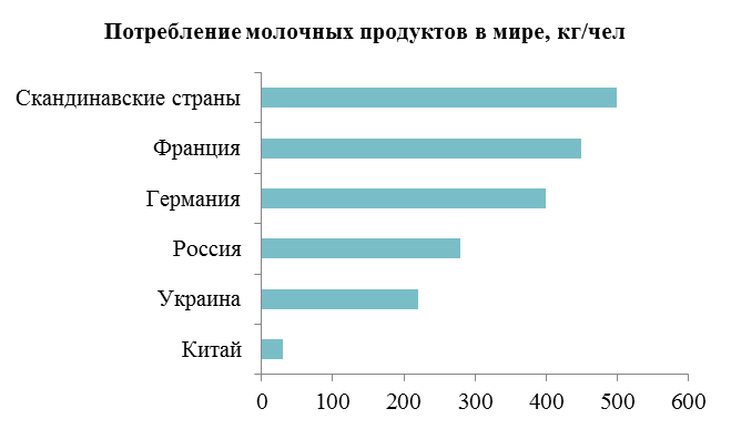 Рынок молочных продуктов Китая является одним из наиболее динамично растущих по производству и потреблению. За последние 15 лет этот рынок увеличился почти в пять раз. Главными причинами роста в Китае являются процессы «вестернизации» и реализация программ правительства, направленных на увеличение потребления молока. Основным на китайском рынке молокопродуктов (80%) является жидкое молоко, импорт которого в 2013 году увеличился на 32%. Однако нарастить экспорт на китайский рынок украинским производителям будет непросто в связи с высокими требованиями к качеству молочной продукции и конкуренцией со странами Европы и Новой Зеландией. При этом китайцы все больше отдают предпочтение импортной молочной продукции, что обусловлено большим доверием к ее качеству. Это должно помочь продвинуться украинской продукции на китайском рынке.